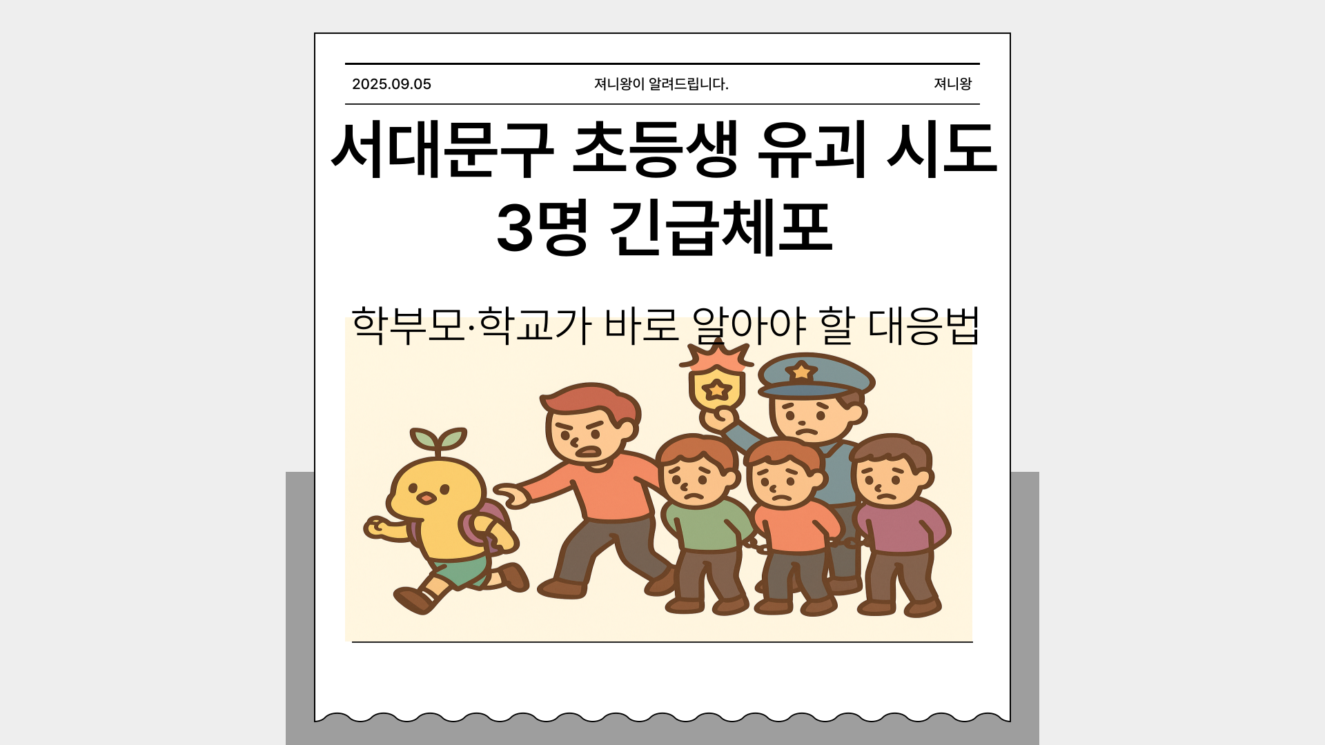 뉴스에서 아이들 관련 범죄 소식을 접할 때마다 부모 마음은 철렁 내려앉습니다. 서울 서대문구에서 초등학생을 유괴하려던 20대 남성 3명이 경찰에 긴급체포됐다는 소식이 전해졌습니다. 다행히 아이들이 기지를 발휘해 자리를 벗어나 큰 피해로 이어지진 않았지만, 이 사건은 우리 사회가 얼마나 아이들 안전에 취약한지 다시 한 번 보여준 사례라고 할 수 있습니다.