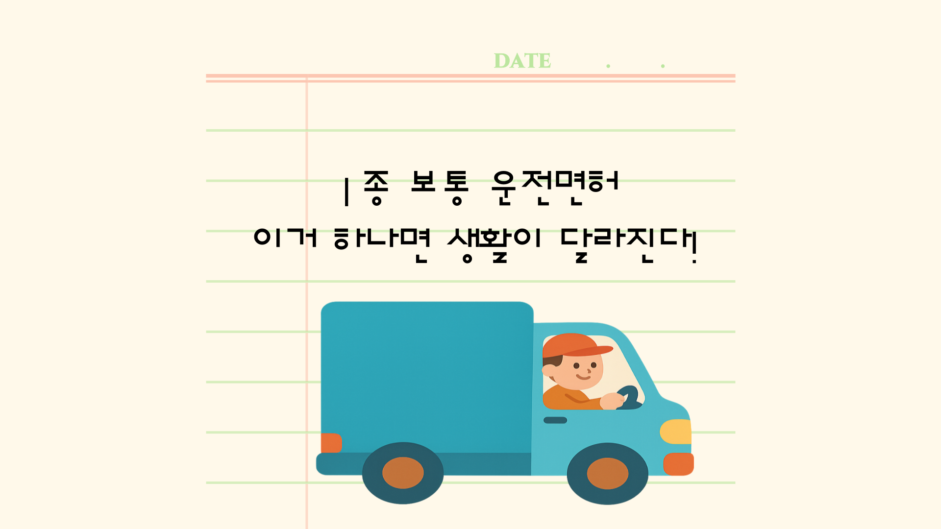- 💼 업무 상황 : 회사에서 탑차 몰고 현장 가야 할 때, 1종 보통 없으면 대체 불가.