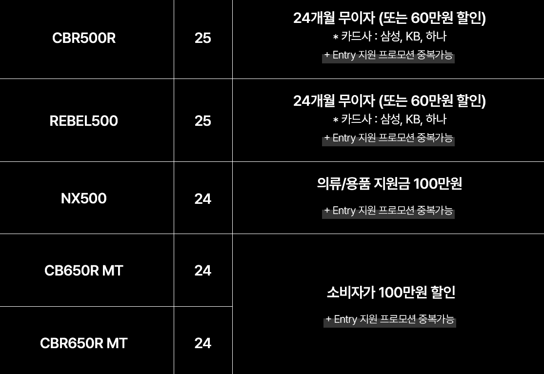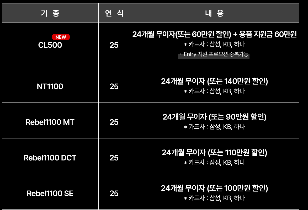 👉 요약하면, 혼다 오토바이는 가격이 안정적인 대신, 프로모션 혜택을 챙기면 실제 체감가는 훨씬 내려간다는 거예요.
